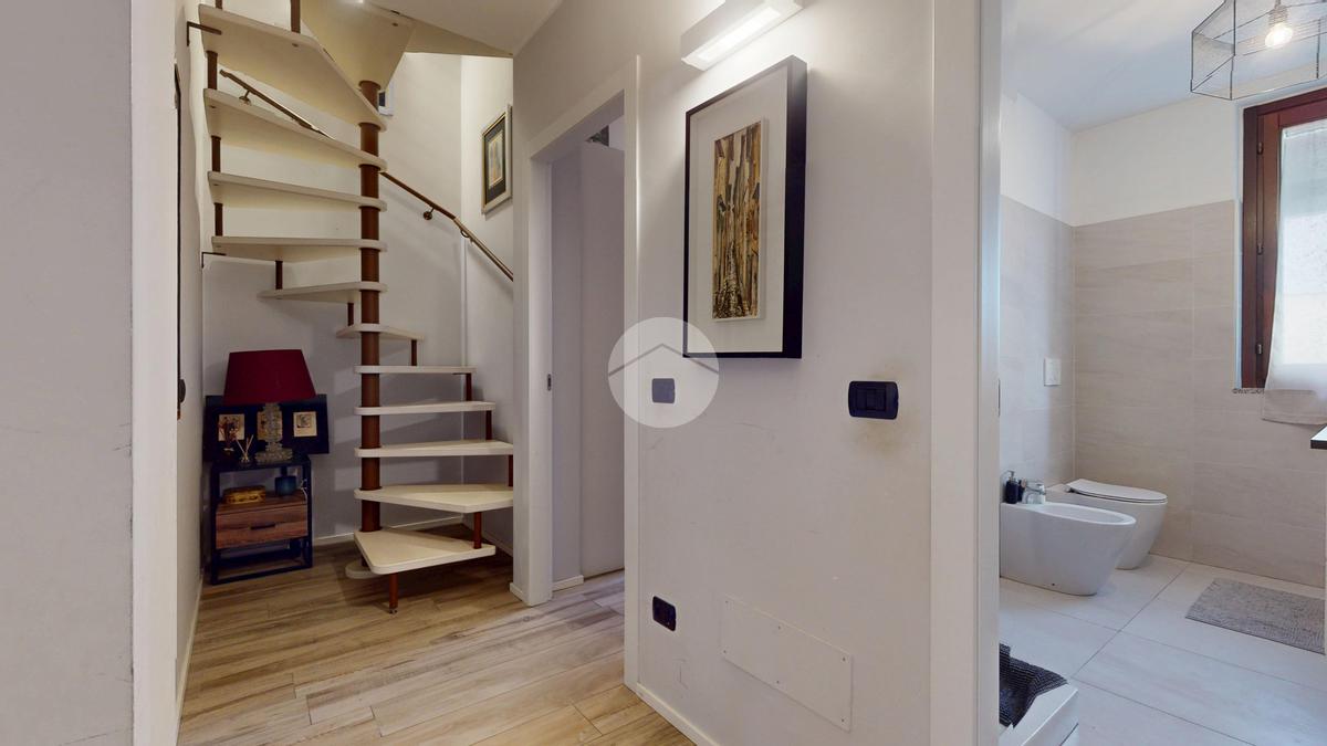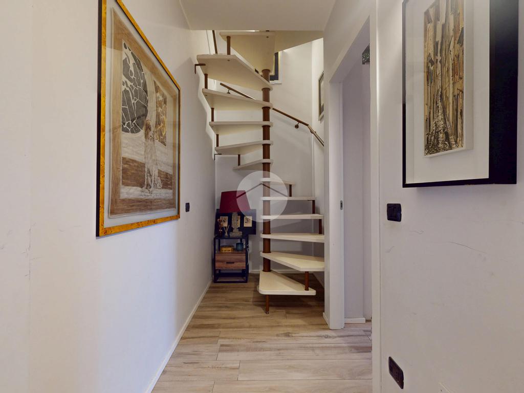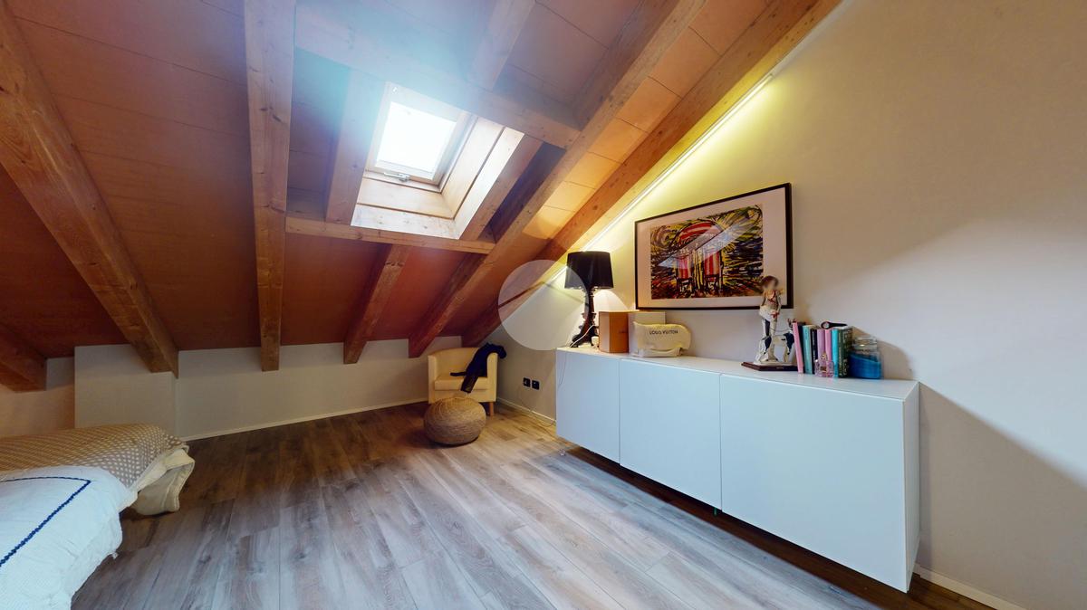 La scala interna conduce alla zona notte con due camere da letto, un secondo bagno finestrato con vasca e una cabina armadio.