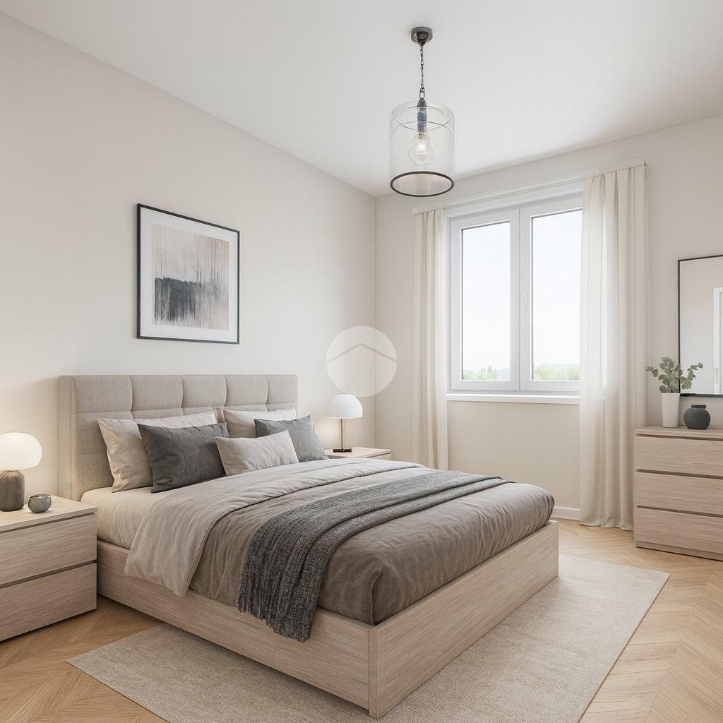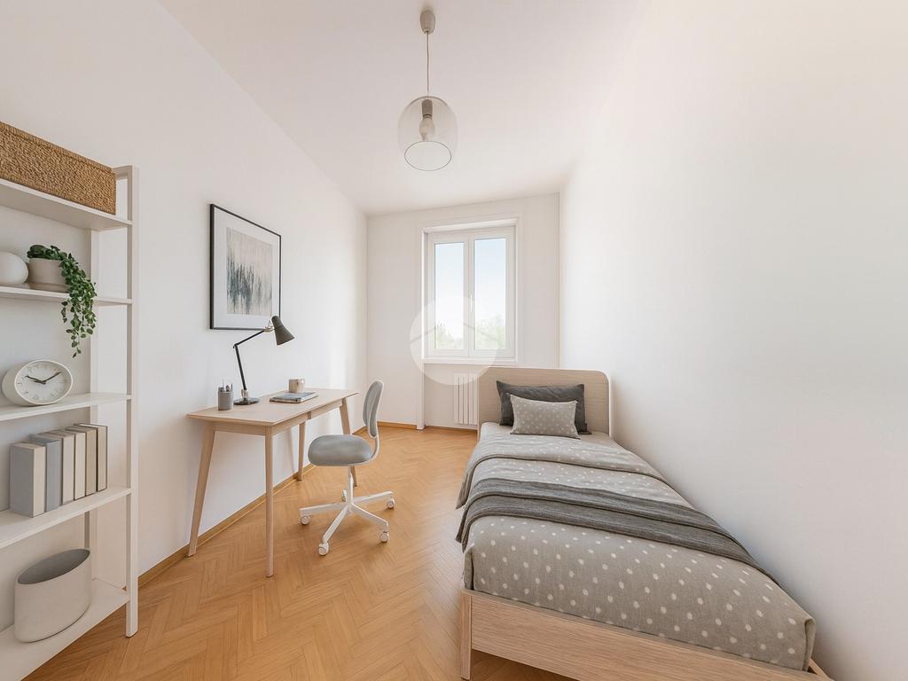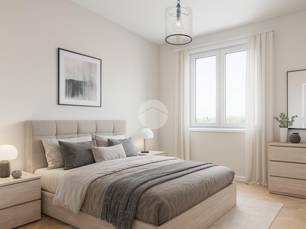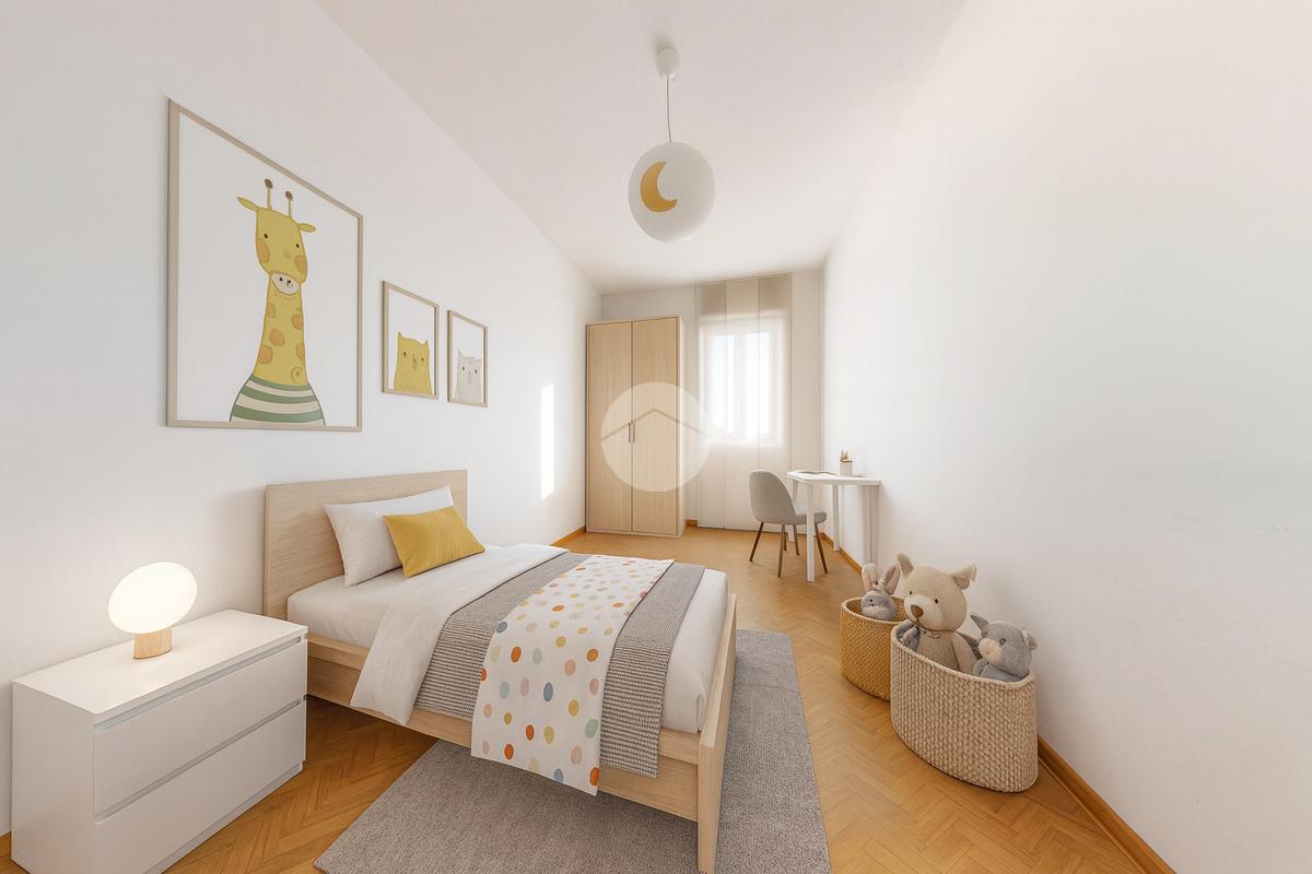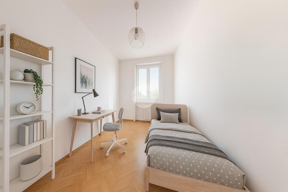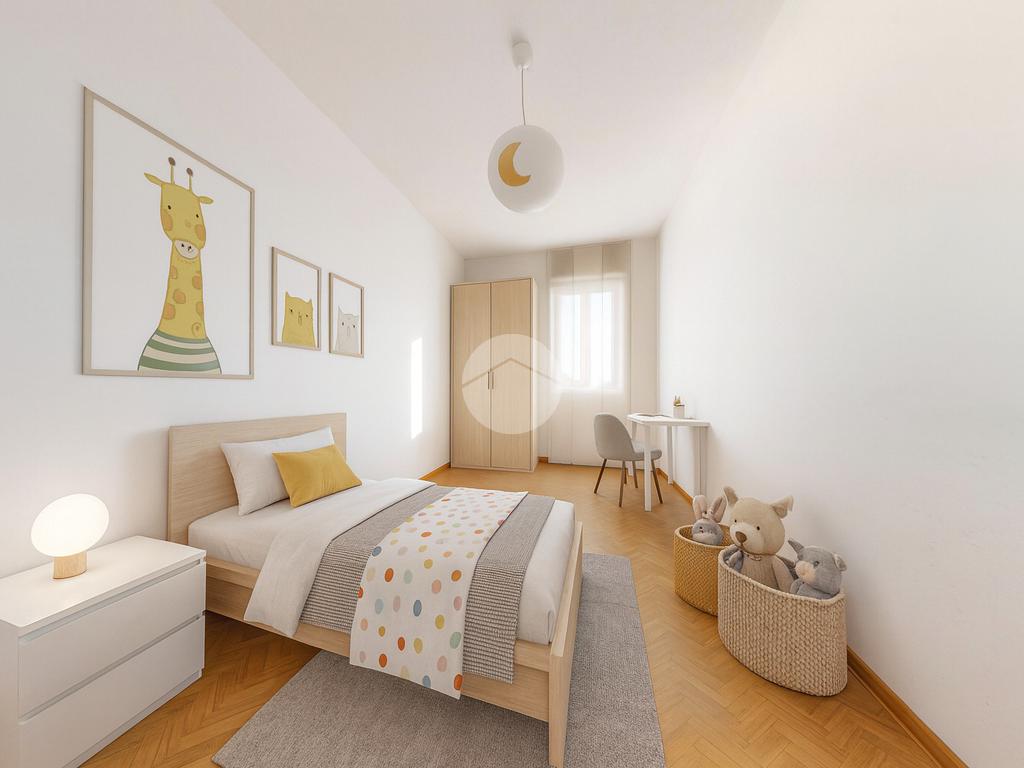 La zona notte comprende una camera matrimoniale spaziosa, una cameretta, un bagno finestrato con vasca e un comodo ripostiglio, perfetto per mantenere ordine e praticità.