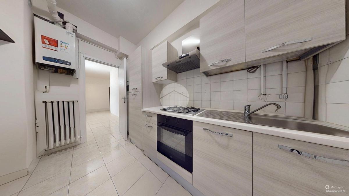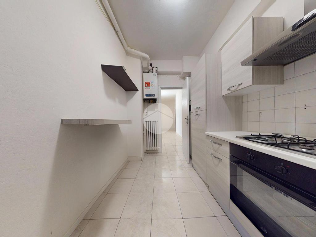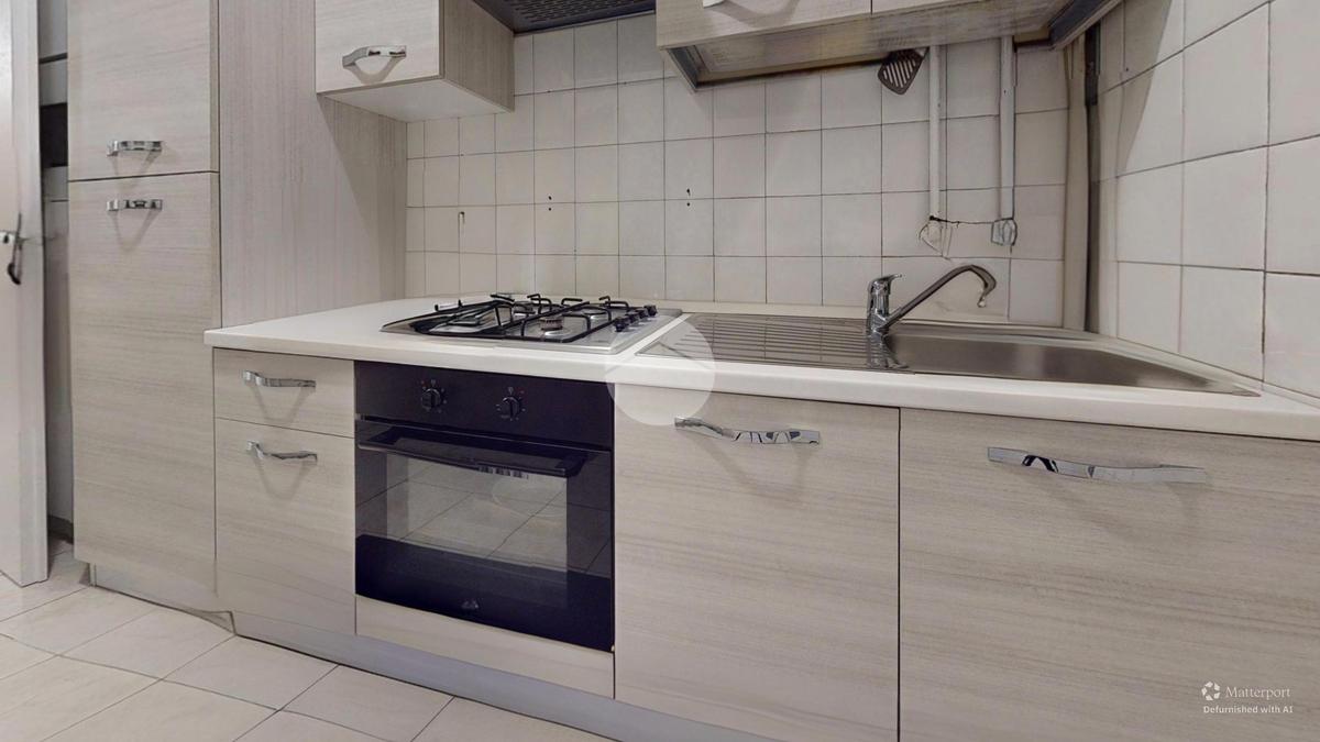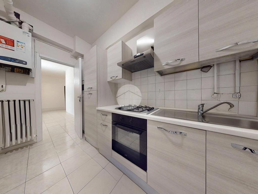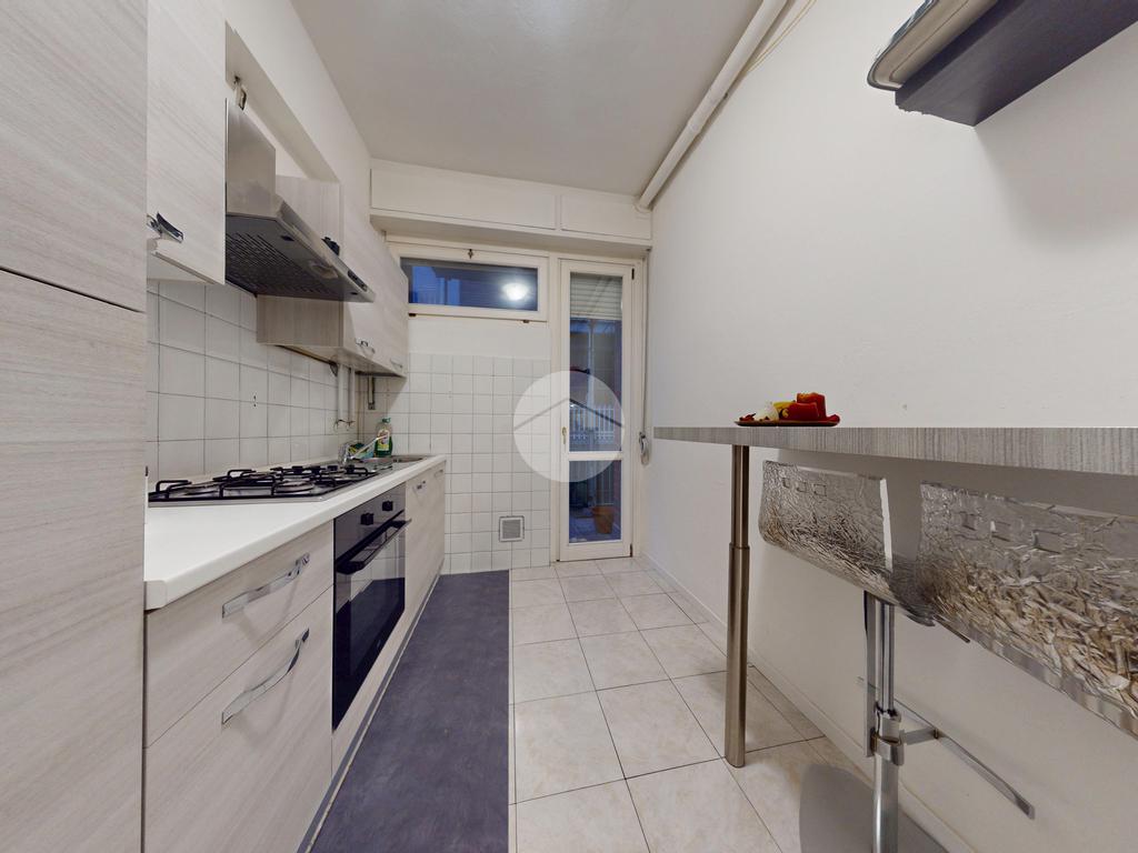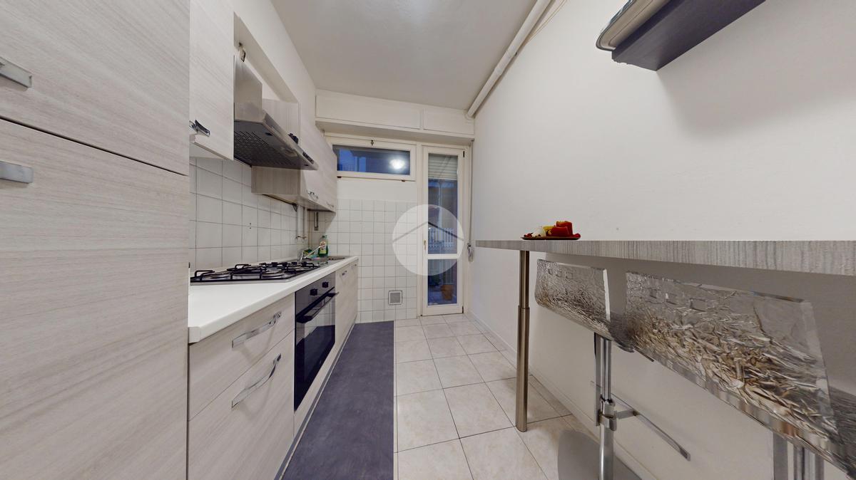 La cucina è separata, funzionale e ben organizzata, con accesso al balcone vivibile, ideale per un tavolino, piante o momenti di relax all’aperto.